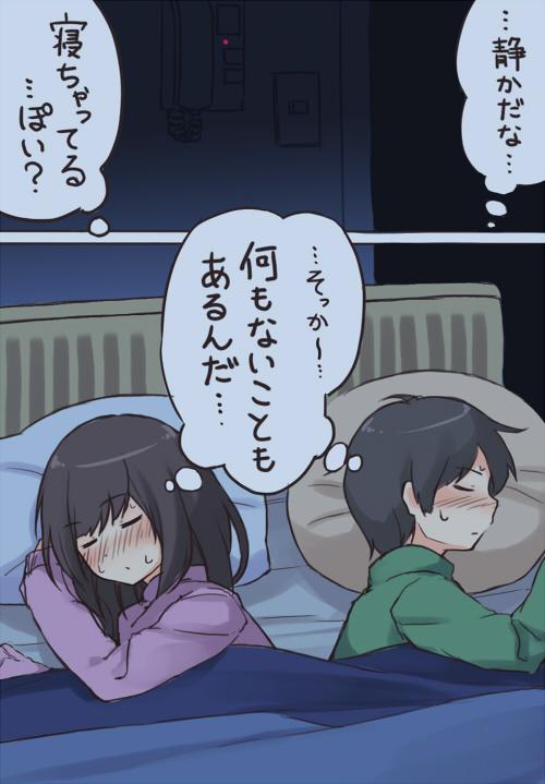 @niichi021: お互い念入りに準備して初めてのお泊りに臨んだのに、結局どちらも上手く切り出せずに悶々とした夜を過ごす新米カップルさん pic.twitter.com/2x6WJNhSiW” こうゆうのいいよね