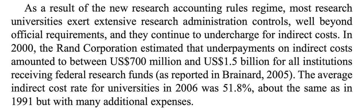 Noteworthy is the data point that indirect costs started at a flat 8% rate and eventually moved to an accounting-backed negotiated rate. Stanford's rate went up to 70% before the scandal, then went down to 55.5%.pic.twitter.com/jtLf4UkJR2