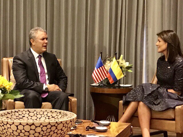 @USUN: We had a great meeting w President-elect@IvanDuque ahead of his inauguration to discuss US-Colombia ties. We look forward to a strong partnership that aggressively counters the narcotics trade & increases stability in the region#Colombia#USPartner#UnitedForTheFuturepic.twitter.com/pF4wcB63aL