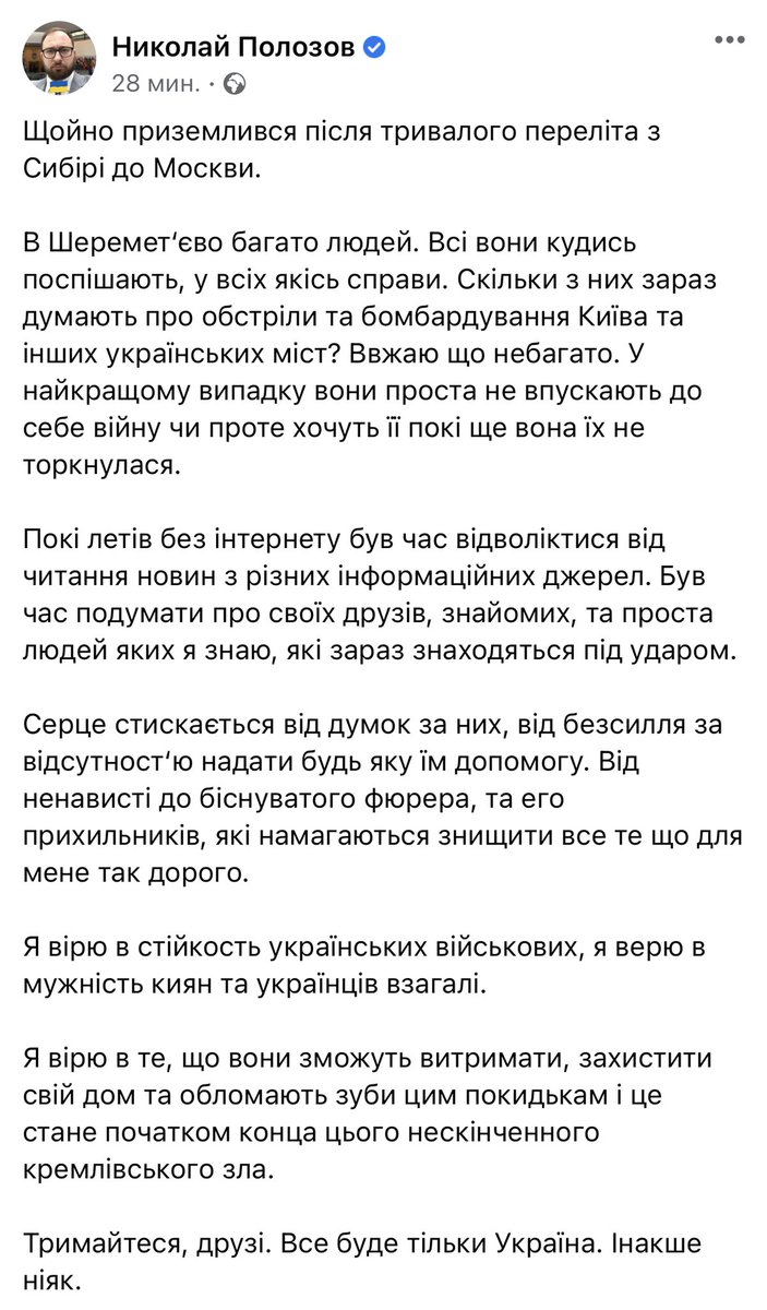 Думками з українцями. Серце стискається неймовірно. Від безсилля, від ненависті до біснуватого фюрера та його загарбників. Тримайтеся, друзі. Все буде тільки Україна. Інакше ніяк. https://www.facebook.com/100001662173833/posts/4986407071424649/?d=n …pic.twitter.com/7gDioYUtBi