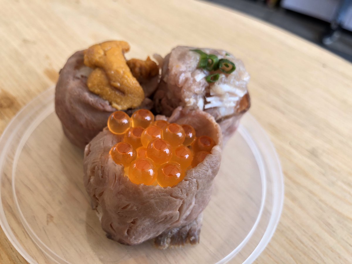 肉ドレス海鮮丼のサーフ&ターフの手毬寿司餃子