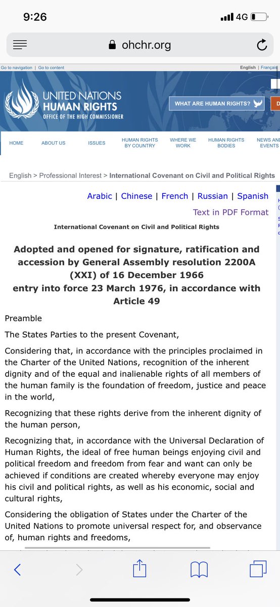 Lmaooo one, the US is a member of the UN. They are a state party on the ICCPR. Two, that screenshot you sent earlier was also citing the UN document so? Freedom of speech is a human right under the UN. If you’re not recognising the UN, you don’t have free speech