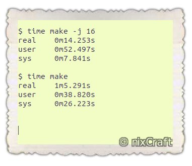 Want to speed up compile time on Linux or Unix-like system? Got an extra core to burn? Try to pass the -j option to make command. make -j 16 # Set 16 as an upper limit of the number of parallel tasks to be run. time make -j 16 # time itpic.twitter.com/yugkMgL6Uj