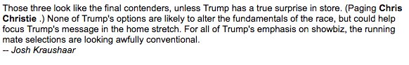 . @realDonaldTrump’s VP options: safe (Pence), strategic (@newtgingrich) or a Hail Mary (Flynn) via @HotlineJoshpic.twitter.com/0Hb52Kw10m