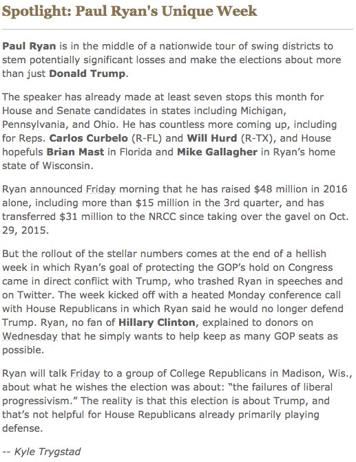Spotlight: @SpeakerRyan’s Unique Week http://bit.ly/2dPNvnT via @KyleTrygstadpic.twitter.com/0mxpAThyFY
