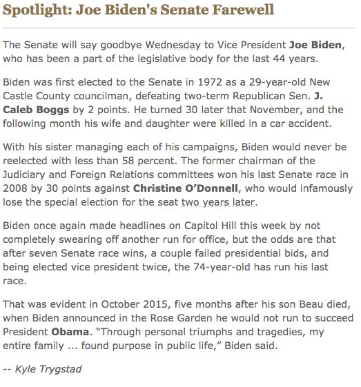 Spotlight: @JoeBiden’s Senate Farewell (via @KyleTrygstad) http://bit.ly/2h6yEGP pic.twitter.com/3U07J4Sc1m