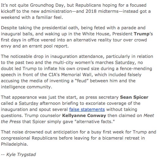 Spotlight: @realDonaldTrump’s Alternative Reality Weekend http://bit.ly/2jR0f22 (via @KyleTrygstad)pic.twitter.com/aBCyn0n83b