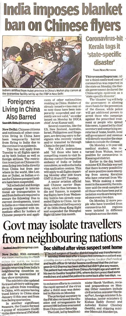 #India imposes blanket ban on Chinese flyers.#cronavirus@WilliamYang120@elsiechenyi@balajis@davidpaulk@HelenBranswell@stevenleemyers@suileepic.twitter.com/cOzYlwTqMc