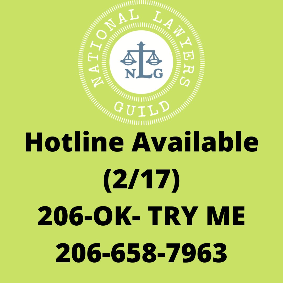 If you're headed out tonight (2/17), please know that the NLG Seattle Hotline is available (2/17). 206-OK-TRY ME/ 206-658-7963pic.twitter.com/bLW1UASngE