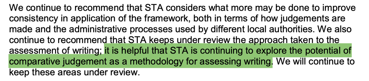 Meanwhile in their annual report on National assessments, Ofqual supports STA's continuing investigations of Comparative Judgement as a replacement for moderation of writing: https://www.gov.uk/government/publications/national-assessments-regulation-annual-report-2019 …pic.twitter.com/mFTZAOWM0C