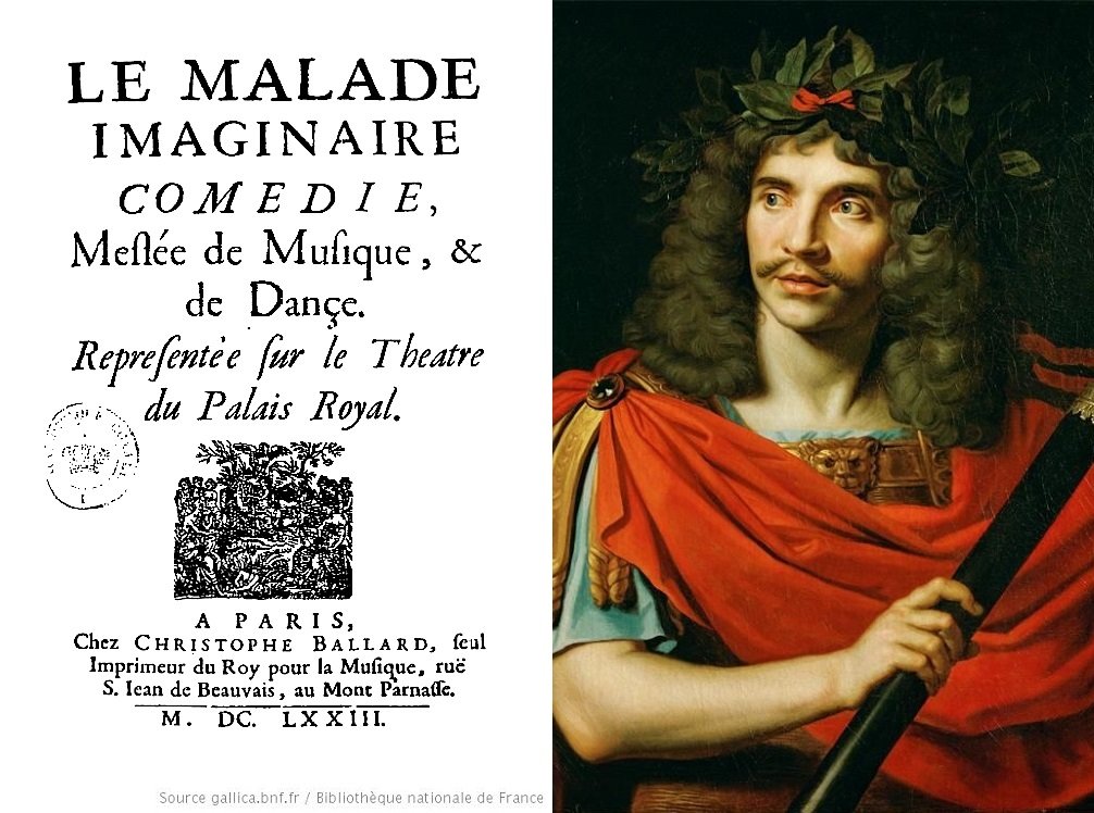 #仏文学】医者を痛烈に皮肉った#モリエール 最後の戯曲『#病は気から』(1673年)。通説では、主役を演じたモリエールが舞台上で本当の咳の発作に襲われ、そのまま死んでしまうのを観客は演技と思って見ていた、と言われますが、歴史的事実は咳の発作まで。息を引き取るのは終演後です。
