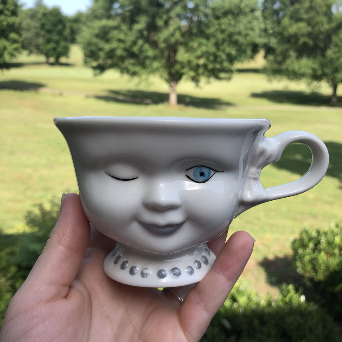 My mom said, “I found this coffee cup that reminded me of you because I never know if you’re half asleep or half awake” but I’m just guffawing over that Baileys logo and Helen Hunt’s signature on the back.pic.twitter.com/wDTz9MMwPQ