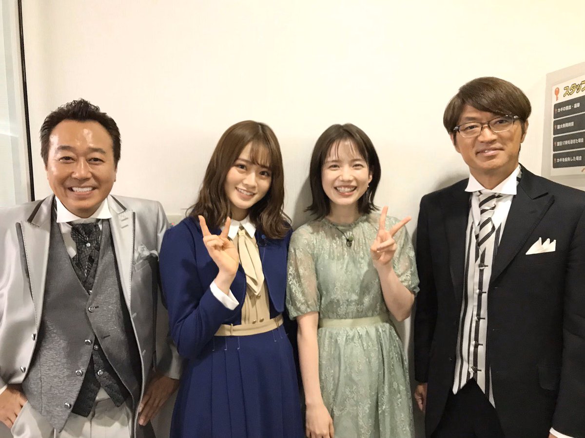 #Qさま‼︎」に#山崎怜奈 が出演します! 収録後、さまぁ〜ずのお二人と弘中アナウンサーがお写真を撮って下さいました