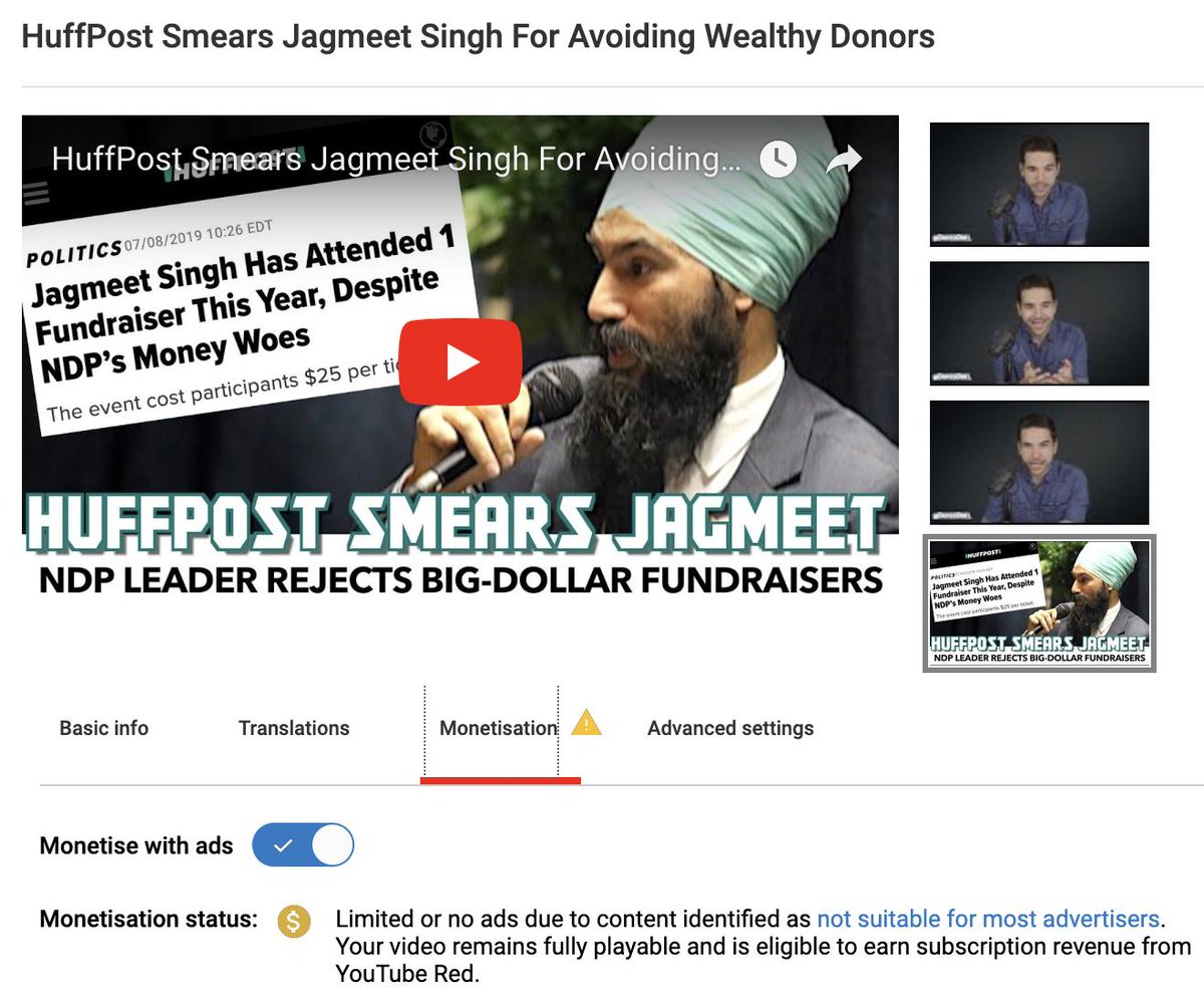 YouTube videos where I defend @IlhanMN or @theJagmeetSingh are regularly demonetized. Is the turban/hijab in the thumbnail triggering the bigoted algorithm? Do their names alone trigger it? I'd like @TeamYouTube to explain this. cc:@SusanWojcickipic.twitter.com/TWULsPDQ1c