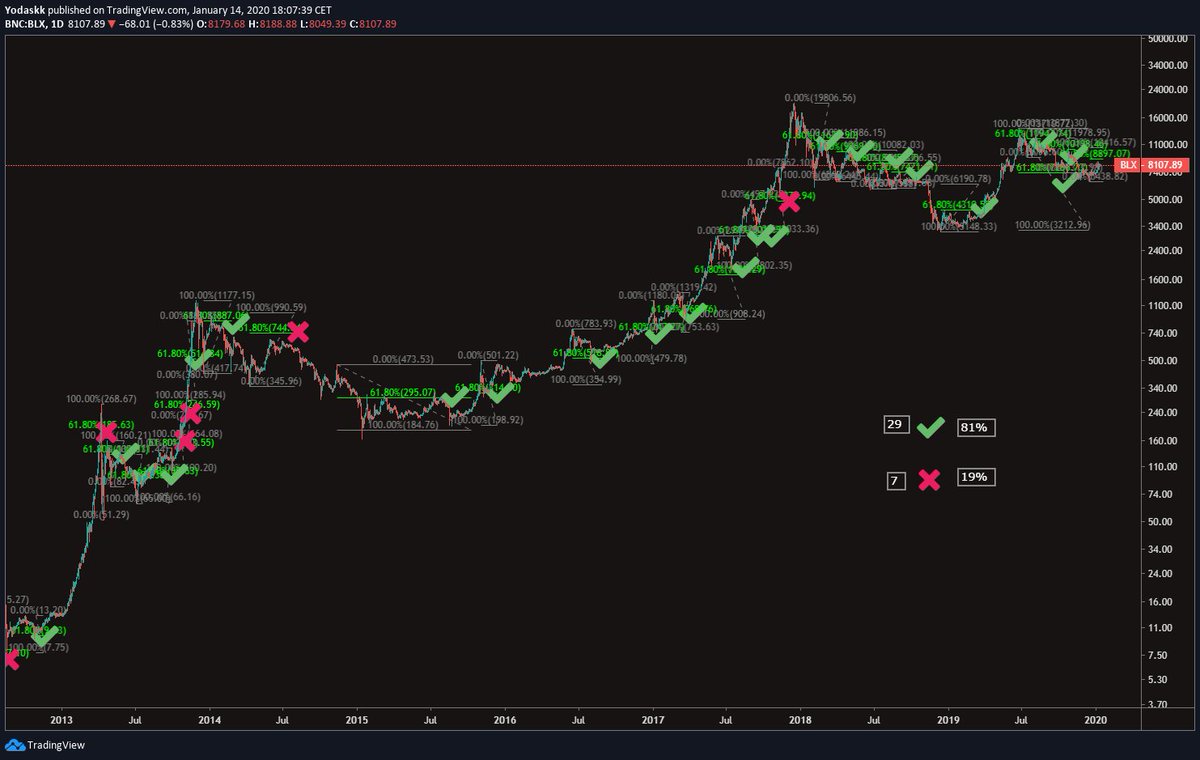 @Yodaskk, 80% of Bitcoin price dumps re-test a 61.8% retrace. This is a critical resistance level for BTC to breakthrough. As you can see, re-tests often fail. Today that level is $9000. A break and hold above 9K would be a strong technical signal for BTC.https://twitter.com/Yodaskk/status/1217133098783182848 …