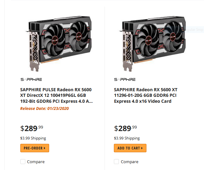 Newegg has a Sapphire Pulse 5600 XT and a Sapphire 5600 XT (not Pulse) listed for the same price. Is there a difference?