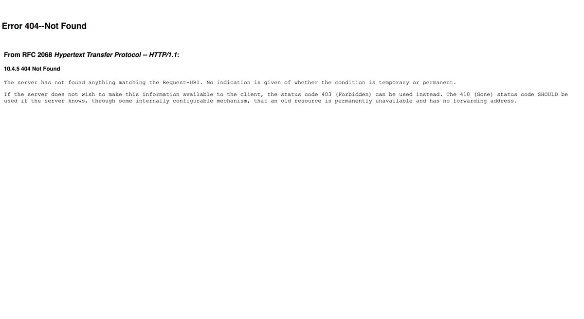 I was just greeted by a 404 page that just recites the definition of 404 from the RFC to me.pic.twitter.com/FIQxBGMGBj