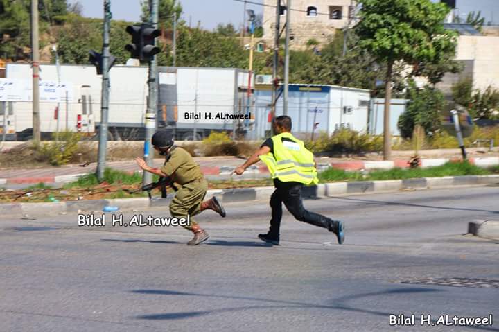 صورة تظهر كيف كان يهرب الجندي الإسرائيلي المدجج بالأسلحة من شهيد الخليل الذي تمكن من طعنه قبل استشهادهpic.twitter.com/fpxQKG60P1