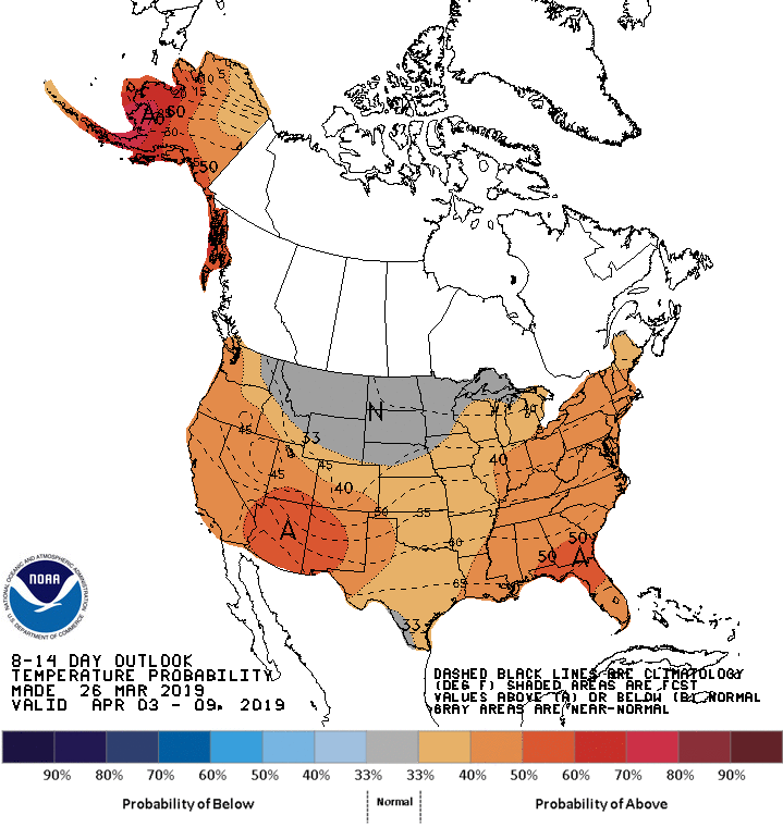 Today's Week-2 outlook for April 3rd through 9th does not favor increased chances of below-normal temperatures anywhere in the U.S. This could mean the effective end to winter across the lower-48 states, with limited chances of a hard freeze moving forward https://www.cpc.ncep.noaa.gov/products/predictions/814day/ …pic.twitter.com/0oUPL19l9L