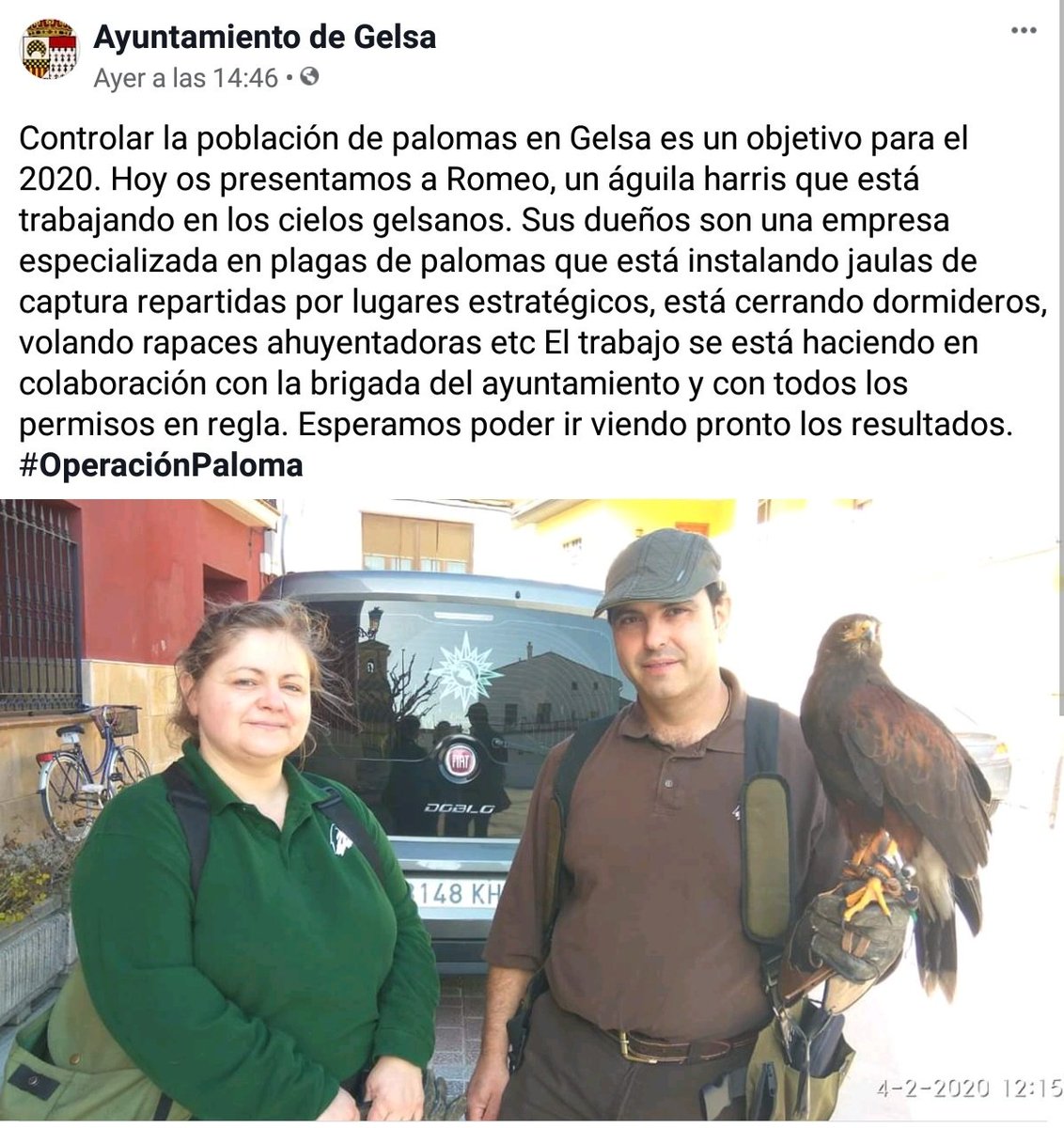 Otro ayuntamiento que dice que capturar palomas con jaula-trampa y halcón es respetuoso... Apaga y vámonos. Aquí tenéis el enlace a Facebook. STOP MALTRATO INSTITUCIONAL