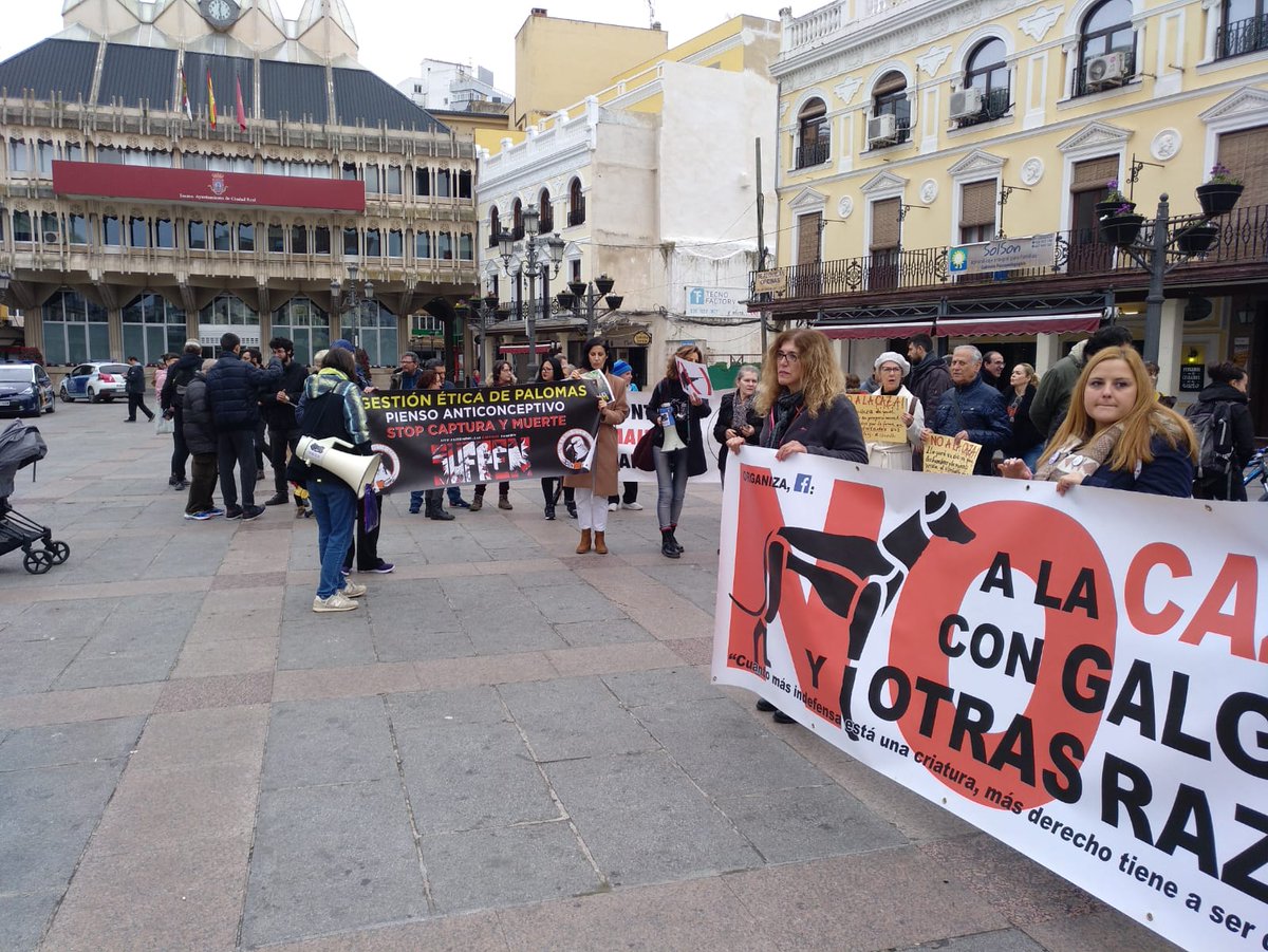 Concentración contra la caza en la Plaza Mayor de Ciudad Real