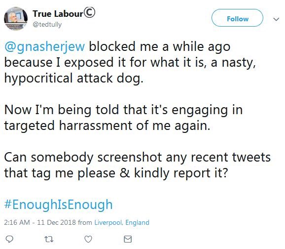 @TracyAnnO &@RachelRileyRR. Now it’s our turn - he lies about harassing a 16 year old girl (@ thelittleleftie) & about targeting him. Look at the screenshots & see how he deceitful he is, all in the name of@jeremycorbyn - bet he’s proud...pic.twitter.com/OeKq6YTOslThis media may contain sensitive material. Learn more