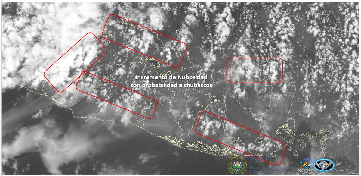 MARN: Se observa el incremento de nubosidad en el occidente del país y sobre las partes montañosas del territorio nacional. Esto puede provocar lluvias en dichos lugares.pic.twitter.com/hiHQoMAyVS
