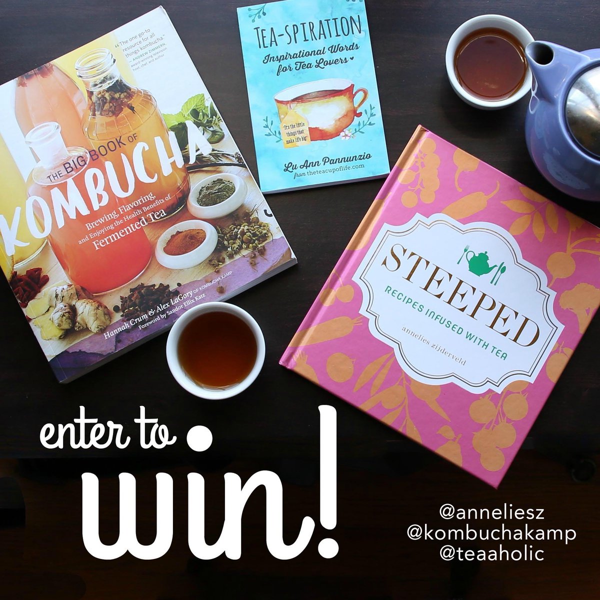 @kombuchakamp and@anneliesz for a tea book giveaway. You can win all of our books! Enter here