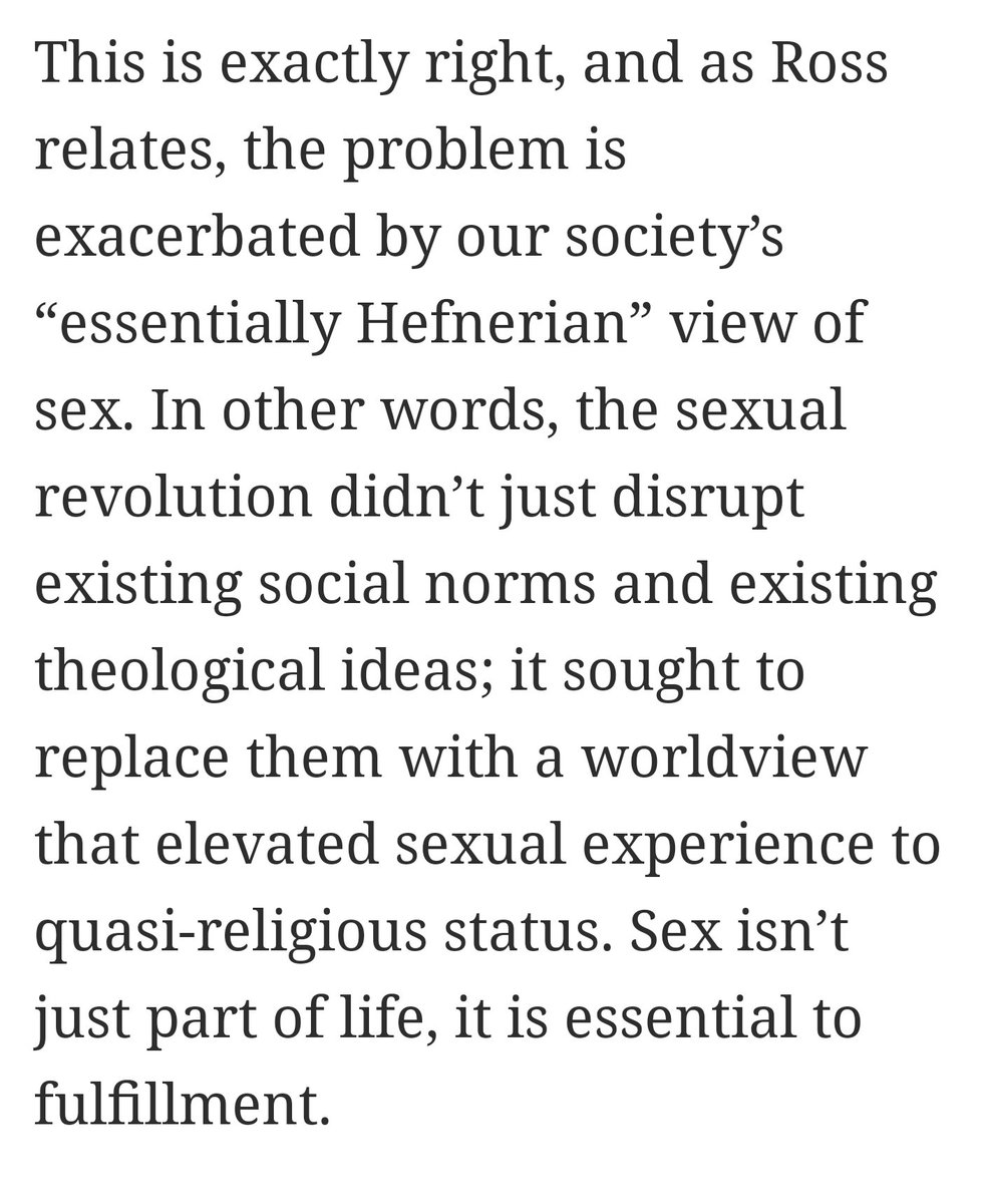 lol. Patriarchy (aka Hefnerian view of sex lolol) has always been the problem, before and after the sexual revolution. When he talks about elevating sex to a quasi-religious status, my first thought is abstinence-only classes.pic.twitter.com/6nq1zdpAA7