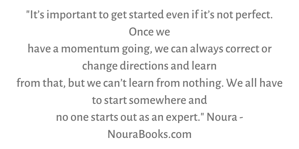 "It’s important to get started even if it’s not perfect. Once we have a momentum going, we can always correct or change directions and learn from that, but we can’t learn from nothing. We all have to start somewhere and no one starts out as an expert." http://NouraBooks.com pic.twitter.com/nuFncLvXnd