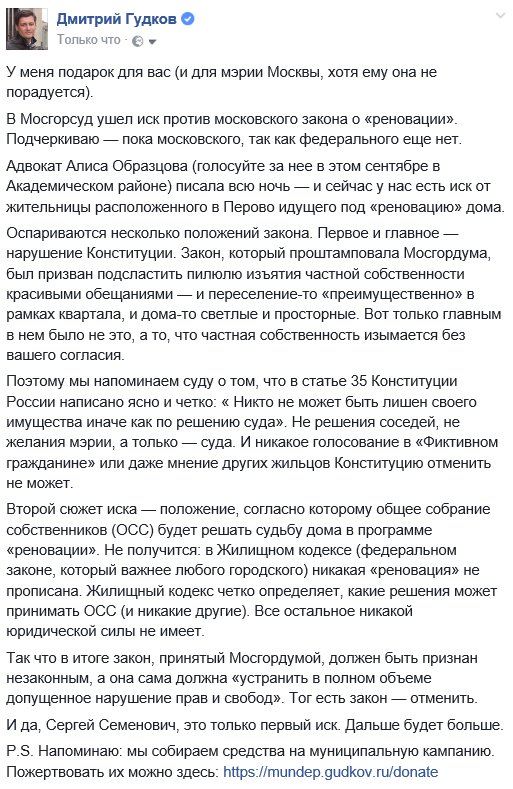 Подали первый иск против московской "реновации". И далеко не последний. https://www.facebook.com/dgudkov/posts/1546638515377583?pnref=story …pic.twitter.com/GluvzwYrJy