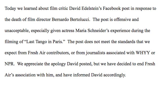 I loathe David Edelstein, who has said disgusting things about me, but this seems shockingly punitive.