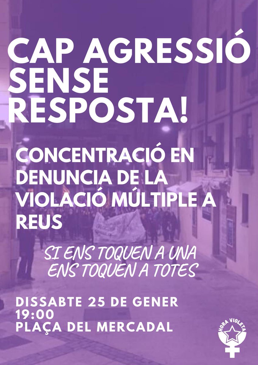 @LHoraVioleta ens convoquen aquesta tarda a la concentració en rebuig de la violació grupal, a#Reus, de fa dos caps de setmana.pic.twitter.com/9QmvYocZXu