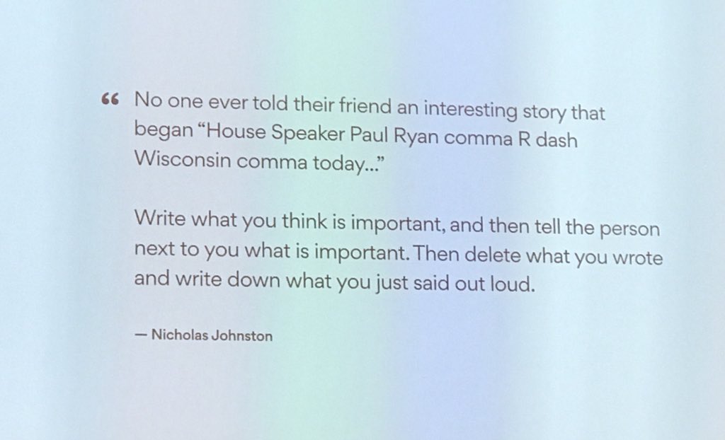 @axios: Write how you would speak, not type.#SNDNYCpic.twitter.com/nWX4oArIAS