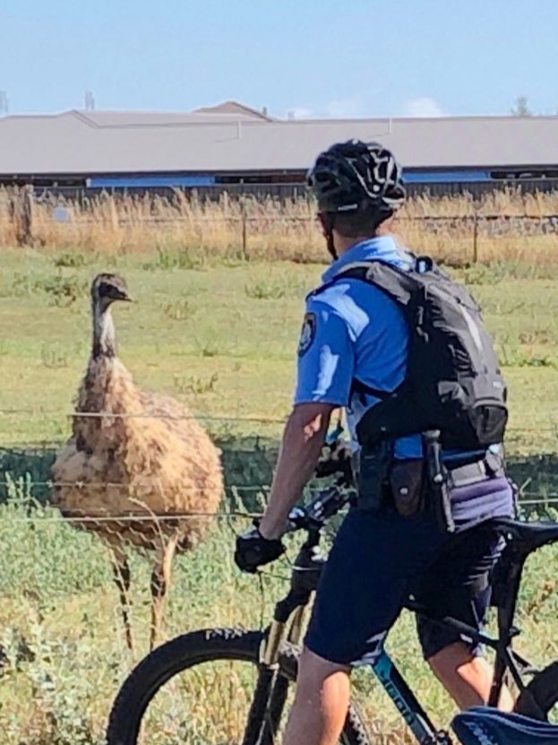 It looks like our officers had a wheelie good day! The Bike Training & Coordination Unit recently conducted a yearly re-accreditation course for our Bicycle Unit officers. This emu decided to make an appearance but sadly he was not emused by our two-wheeled contraptions.pic.twitter.com/GH9cYNWzoq