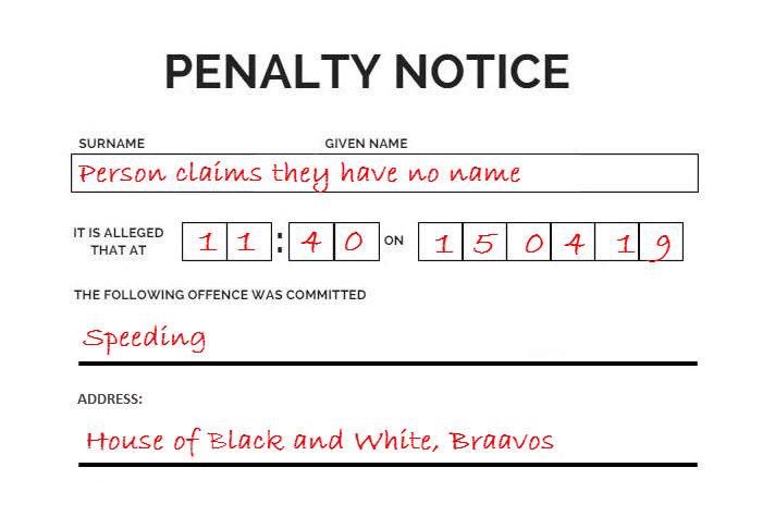 We know that everyone is keen to get home and watch GOT tonight, however if you're caught speeding, telling the officer that they know nothing and stating that you have no name will not get you out of a fine. #DontBreakTheWheel #GameOfThronespic.twitter.com/u9KnlW4nPQ