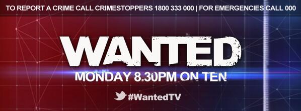 Brand new show WANTED premieres this Monday 8.30pm on Channel 10 #wantedtv @WantedTVHQpic.twitter.com/sS9xJpgXjS