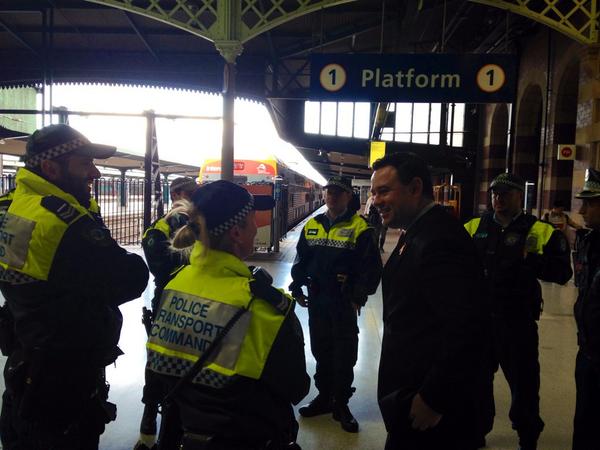 Talking with @nswpolice Transport Command officers re Operation Collosus. Making transport safer with hi vis policingpic.twitter.com/rHrg2YLiDI