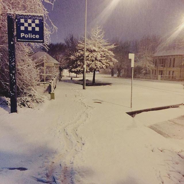 #Orange Police Station was in a #winterwonderland on the weekend. Captured by Instagram user @megsjaned. #coldsnappic.twitter.com/rk4AENNYwV