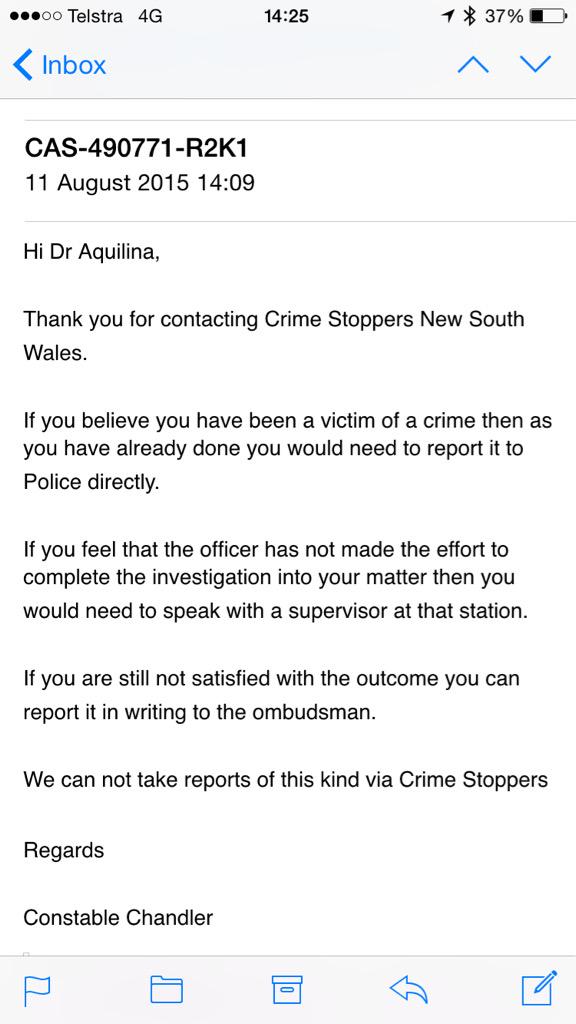 @nswpolice I've just been advised by crime stoppers that your advice 2 report it online is incorrect.@AGFchairmanpic.twitter.com/ybYogrexHE