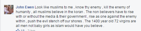 Comment posted 2 hrs ago on below page inciting violence