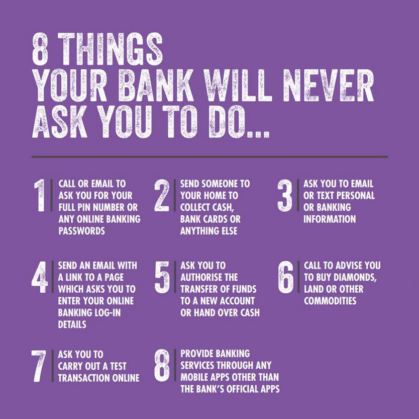@nswpolice @HighvoltageArc @actionfrauduk I kind of wish that was titled 8 things your bank won't do. But so useful!
