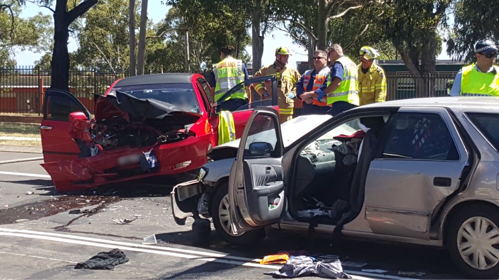 BLACKTOWN Walters Rd | 3ppl to hosp. after a head-on crash. 1 person rescued from a car by #FRNSW. (