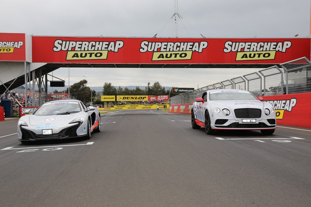 The NSWPF sponsored Mclaren 650s Spider & Bentley Continental GT doing a parade lap on the Mount Panorama Circuit at the 2016 Bathurst 1000.pic.twitter.com/Umm7VKfBCS