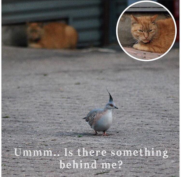 The Crested pigeon is a protected animal under NSW Law control your cat @nswpolice, should be kept inside or in cat run.