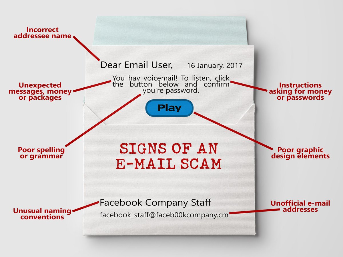Great advice! Needs disclaimer:"not an exhaustive list". Many of the best phishing scams imitate logos/design and use spellcheck.
