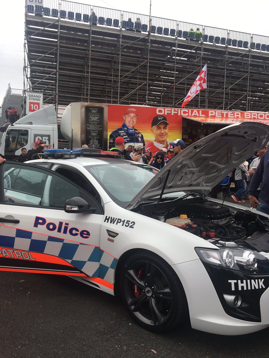 V8 Hall of famer Dick Johnson autographs Traffic & Highway Patrol Command Ford Falcon GT at #Bathurst1000pic.twitter.com/A5JwhXAOH5