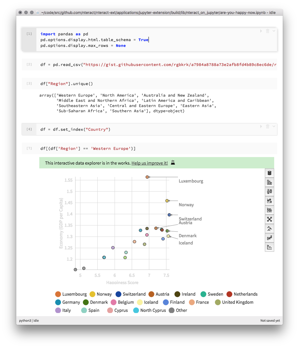 @nteractio's Data Explorer in this interactive demo: https://mybinder.org/v2/gh/nteract/examples/master?urlpath=%2Fnteract%2Fedit%2Fpython%2Fhappiness.ipynb …#OpenSource#notebooks#datavizধন্যবাদ। আপনার সময়রেখাকে আরো ভালো করে তুলতে টুইটার এটিকে ব্যবহার করবে। পূর্বাবস্থায়পূর্বাবস্থায় -