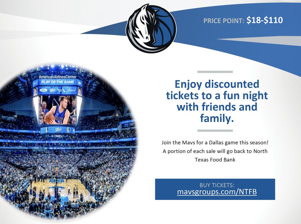 @dallasmavs' benefit game! Bring your family out for a night of fun and help provide nutritious meals for our hungry neighbors! Get your tickets TODAY at http://mavsgroups.com/ntfb pic.twitter.com/kCeuV36rRd