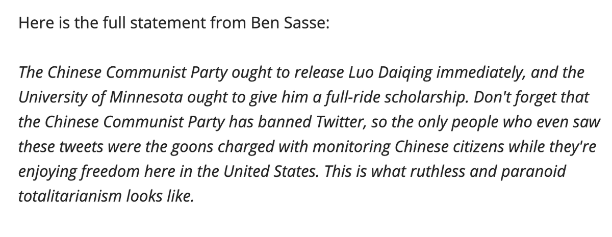 @IlhanMN and@BenSasse calling for Luo Daiqing to be released:pic.twitter.com/n9hIj4sGnE